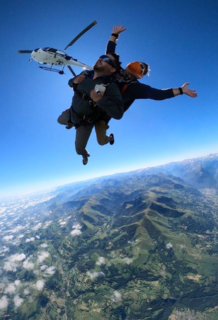 Préparation: Avant votre saut, vous suivrez un brefing qui a pour but d'expliquer toutes les étapes de votre baptême en chute libre. Montée en hélicoptère ou en avion: Vous découvrirez les plus hauts sommets des Pyrénées. Chute libre. Nous quitterons l'aéronef pour une chute libre de 50 secondes environ et des sensations de vol à 200 km/h. Pilotage. Notre vitesse réduite à 35 km/h ; vous piloterez le parachute durant 5 à 7mn afin de rejoindre la zone d'atterrissage. Atterrissage. Grâce à notre parachute en forme d'aile, l'atterrissage se fera en douceur.